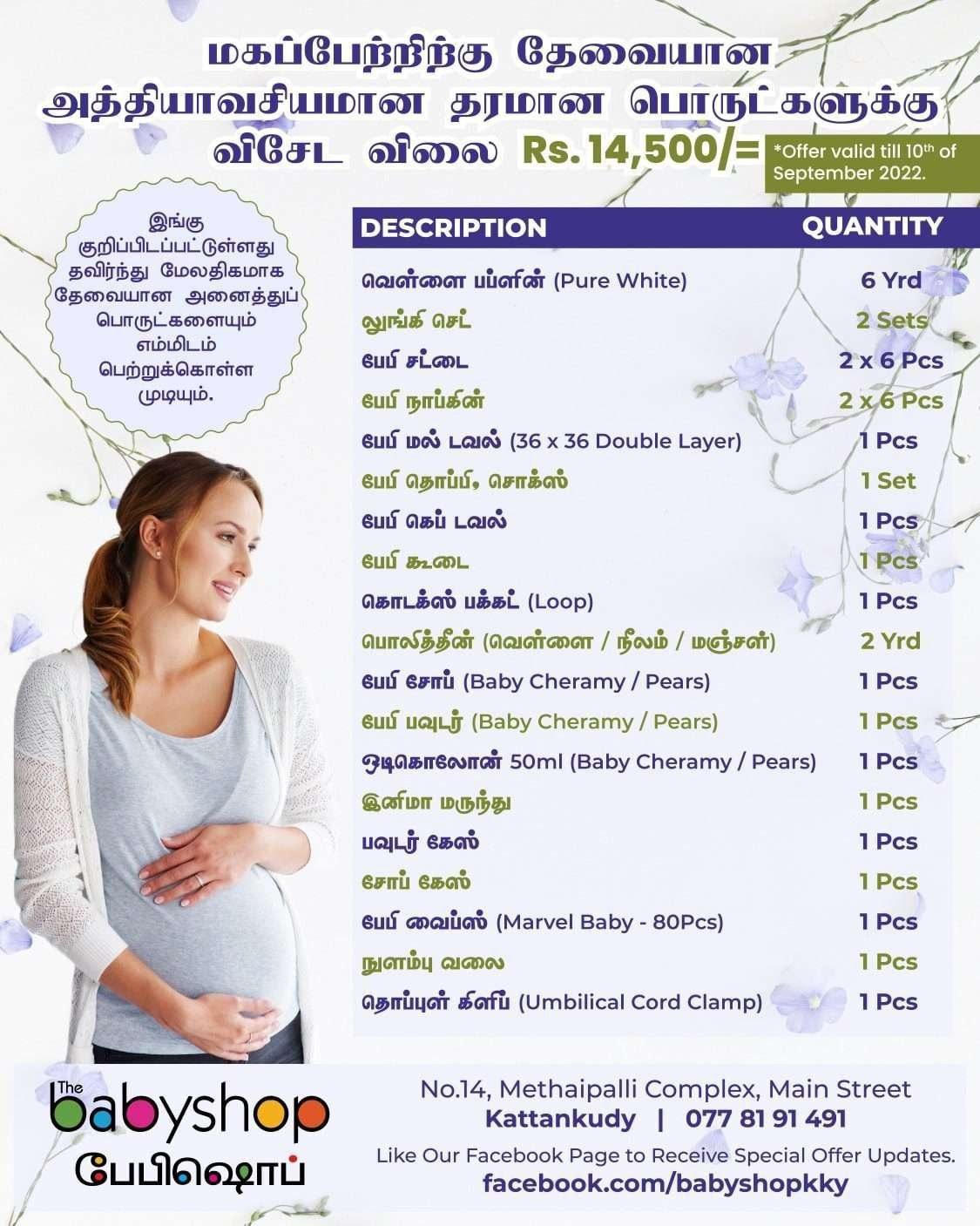 மகப்பேற்றிற்கு தேவையான தரமான அத்தியவசியமான பொருட்களுக்கு Rs.14,500/= மாத்திரமே