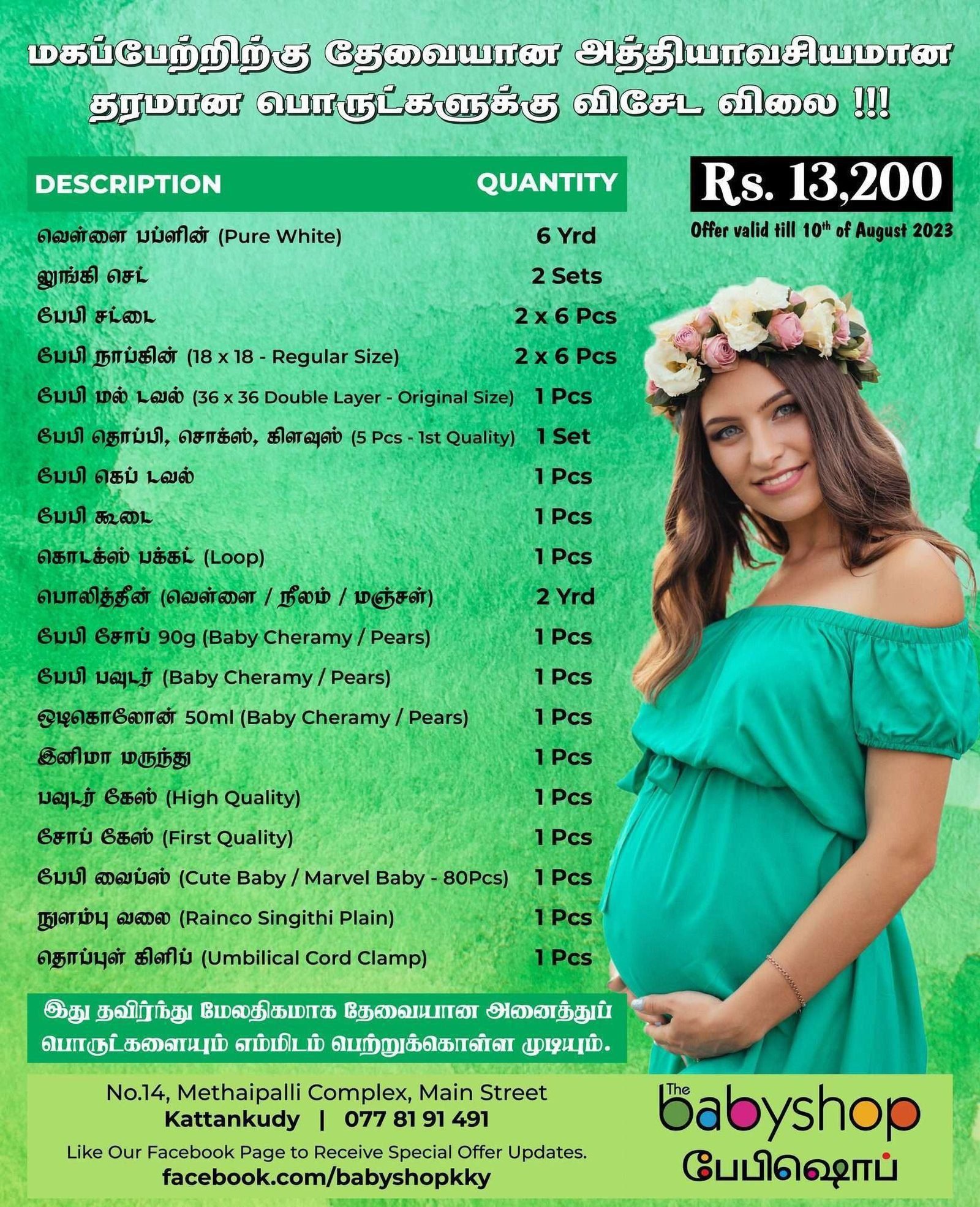 மகப்பேற்றிற்கு தேவையான #தரமான அத்தியவசியமான பொருட்களுக்கு Rs.13,200/= மாத்திரமே