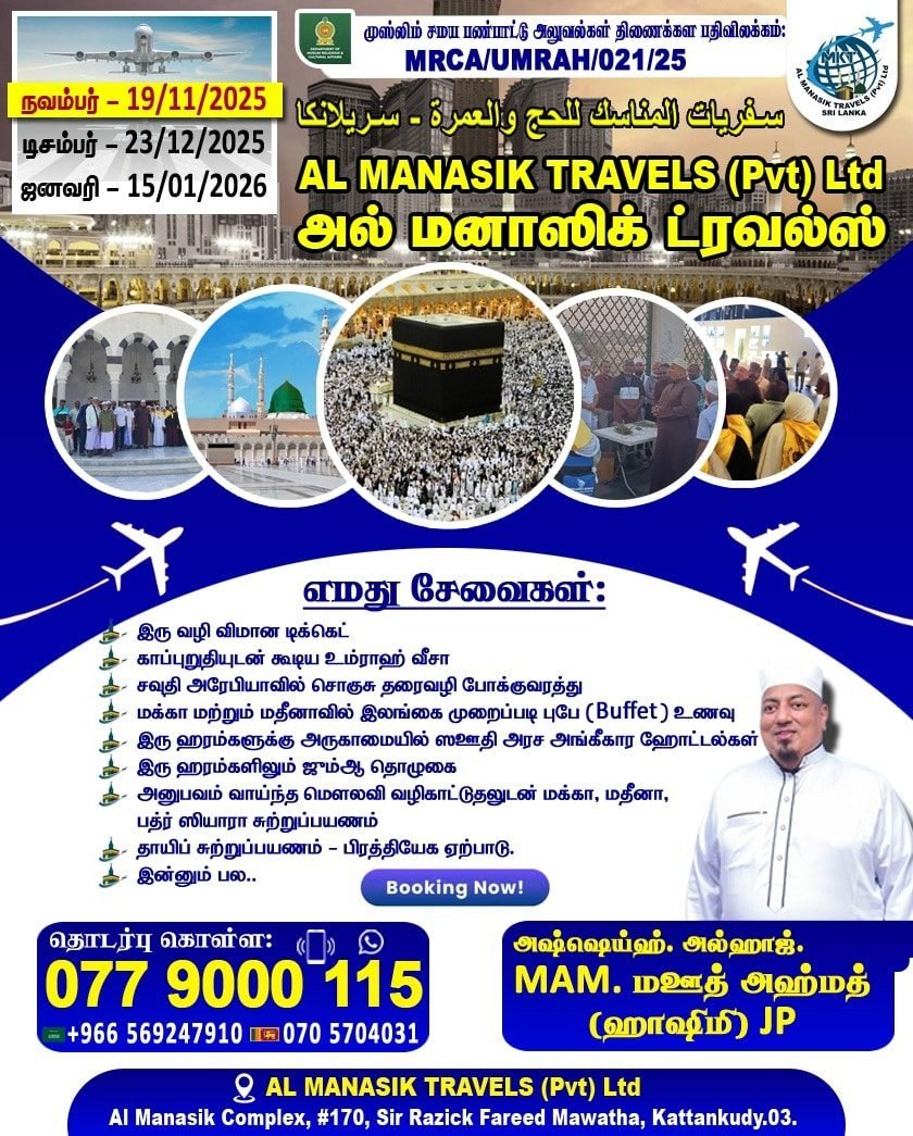 ⚡️ அனுபவம் வாய்ந்த மௌலவி வழிகாட்டுதலுடன் மக்கா, மதீனா, பத்ர் ஸியாரா சுற்றுப்பயணம்