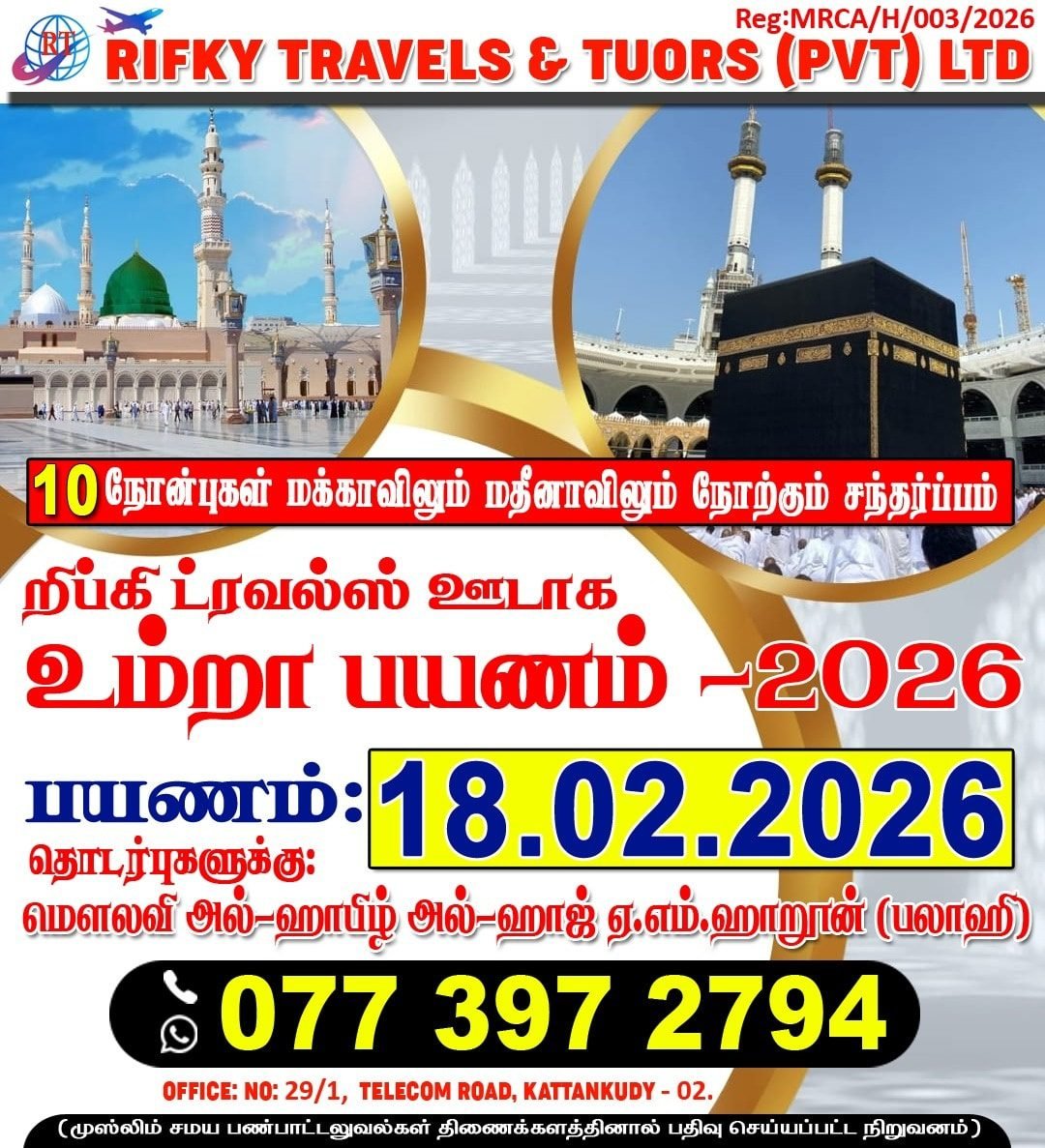✨ RIFKY TRAVELS & TOURS (PVT) LTD மூலம் 🕋 உம்றா பயணம் பெப்ரவரி மாதம் 🕌