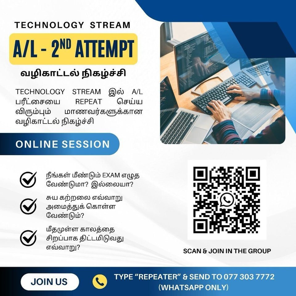 Technology Stream இல் A/L பரீட்சையை Repeat செய்ய விரும்பும் மாணவர்கள் மாத்திரம் இந்த Group இல் இணைந்து கொள்ளவும்