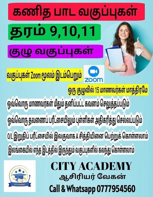 தரம் 09, 10 & 11 மாணவர்களுக்காண Zoom ஊடாக கணித பாட வகுப்புக்கள்