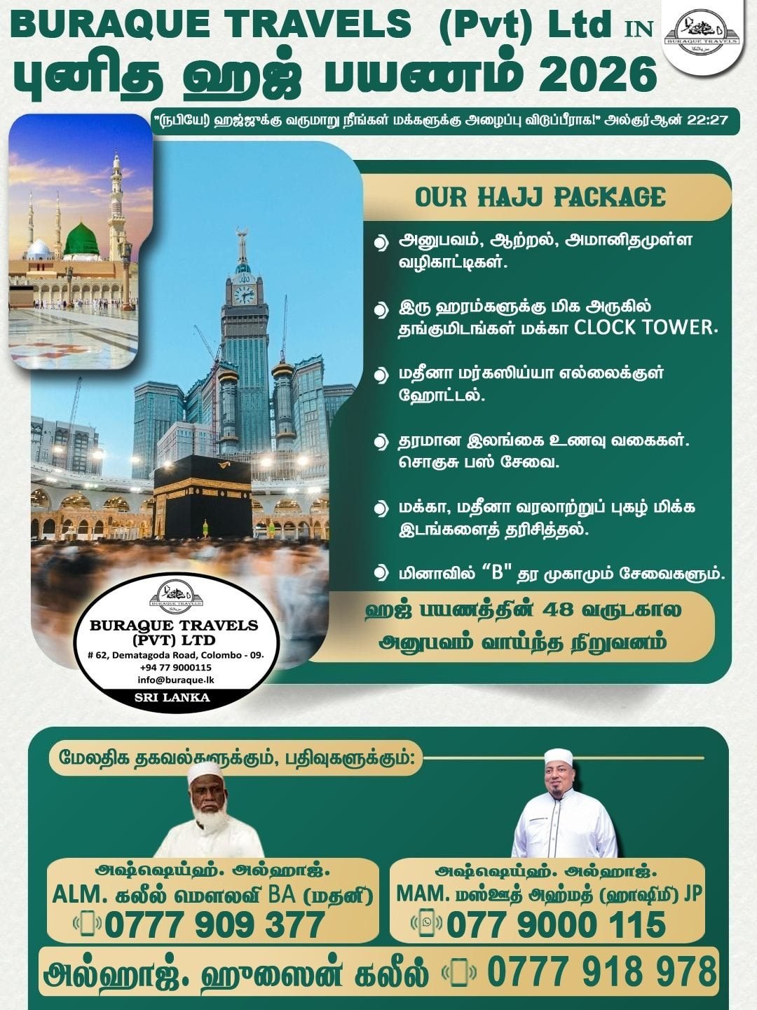 இலங்கையின் முன்னணி ஹஜ் & உம்ரா சேவை நிறுவனம் – Buraque Travels & Tours (Pvt) Ltd
