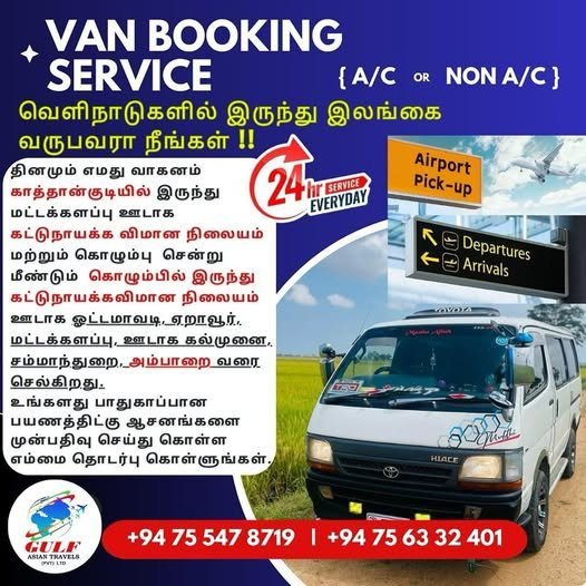 📢 நாட்டின் எப்பகுதிக்கும் பாதுகாப்பான முறையில் அனைத்து வகையான பிரயாணங்களுக்கும் சாரதியுடன் வேன் ஹயர் செய்ய முடியும்.
