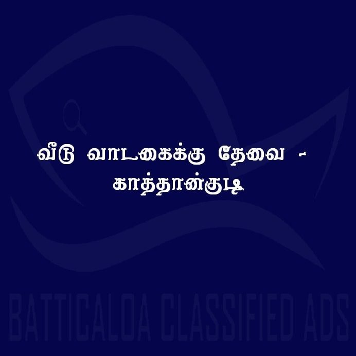 காத்தான்குடி மற்றும் அதனை அண்டிய பகுதிகளில் வீடு ஒன்று வாடகைக்கு தேவை.