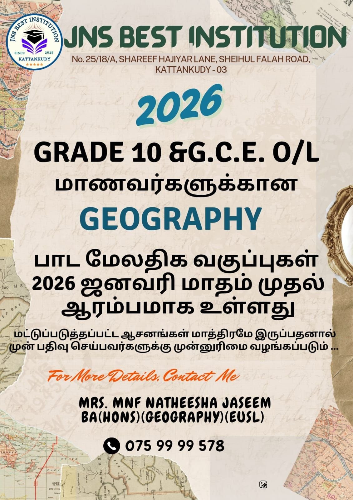 📢 தரம்10& G.C.E. O/L மாணவர்களுக்கா புவியியல் பாட புதிய வகுப்புகள் ஜனவரி மாதம் முதல் ஆரம்பம்,