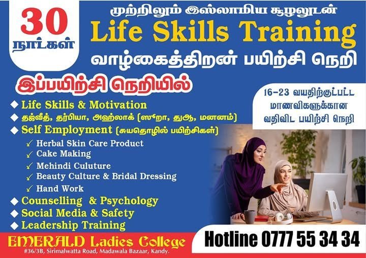 16 -23 வயதிற்குட்பபட்ட மாணவிகளுக்கா இஸ்லாமிய சூழலுடனான (30 நாள்) வதிவிட வாழ்க்கைத்திறன் பயிற்சிநெறி