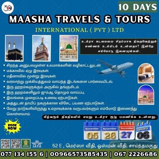 ✨ MAASHA TRAVELS INTERNATIONAL (PVT) LTD மூலம் 🕋 உம்றா பயணம் நவம்பர் மாதம் 🕌
