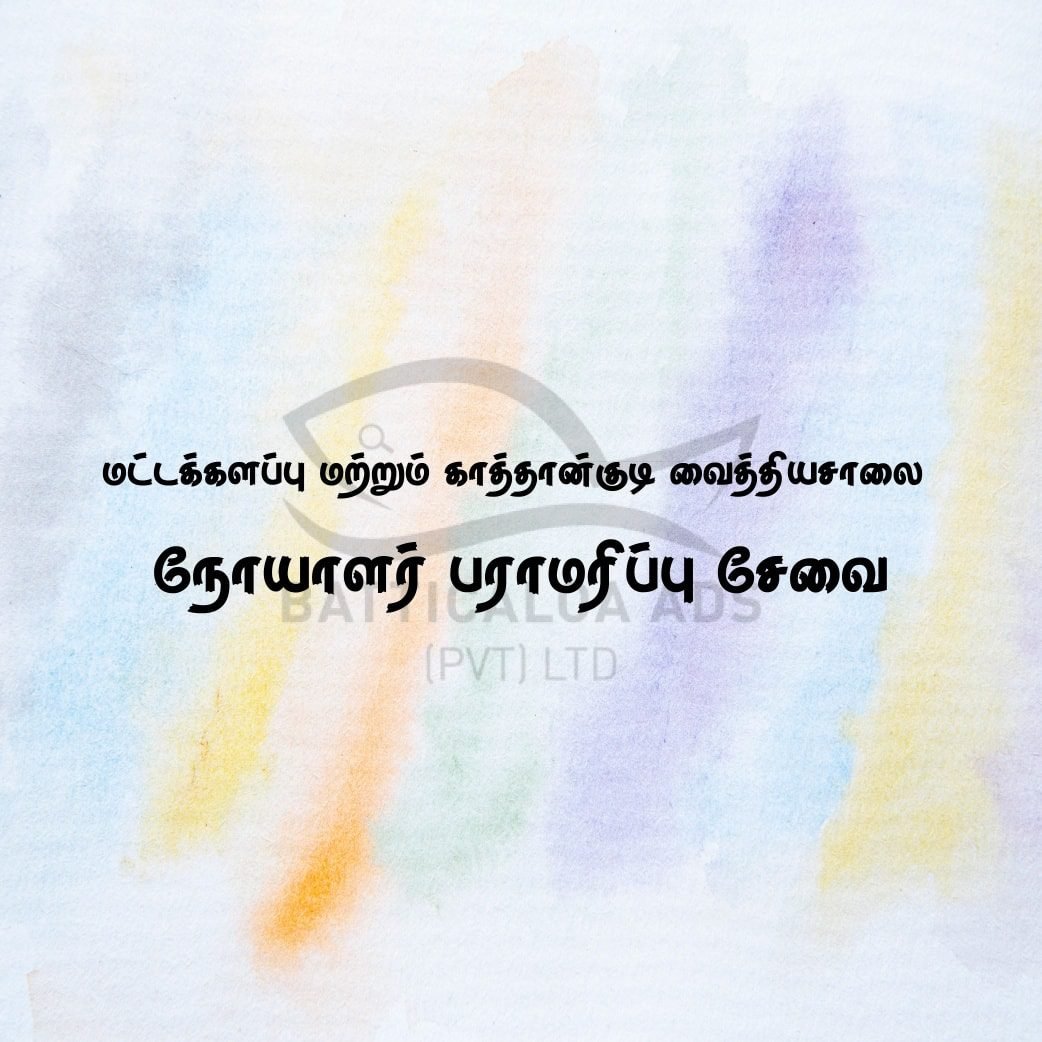 மட்டக்களப்பு மற்றும் காத்தான்குடி வைதியசாலைகளில் இருக்கும் உங்கள் அன்பான உறவுகளை பராமரிப்பதற்கு ஆட்கள் தேவை என்றால் எம்மை தொடர்பு கொள்ளுங்கள்
