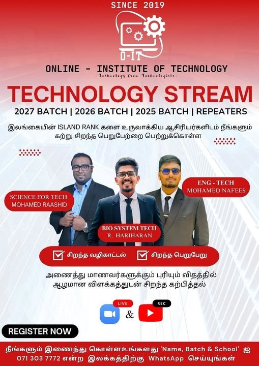 🔰 G.C.E A/L TECHNOLOGY STREAM – TAMIL MEDIUM 🔰