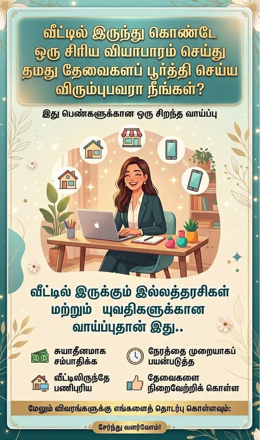 வீட்டில் இருக்கும் இல்லத்தரசிகள் மற்றும் யுவதிகளுக்கான வாய்ப்புதான் இது..