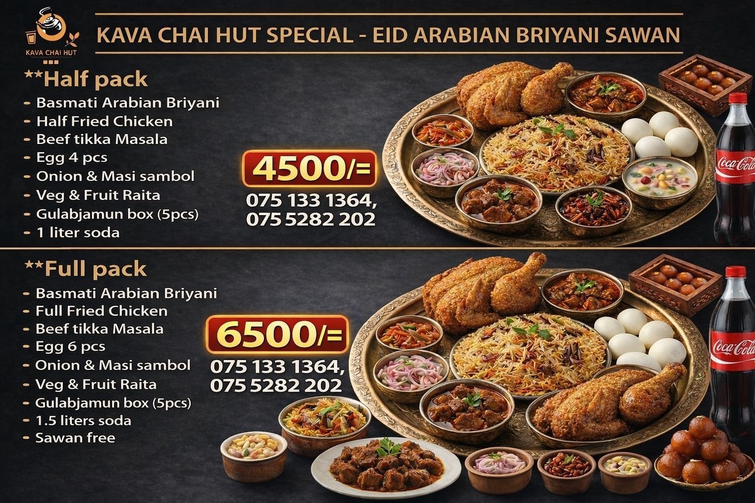 இந்த Eid-ul-Fitr கொண்டாட்டத்துக்காகவே நம்மட KAVA CHAI HUT-ல 🔥 Arabian Biryani Sawan Special Offer 🔥
