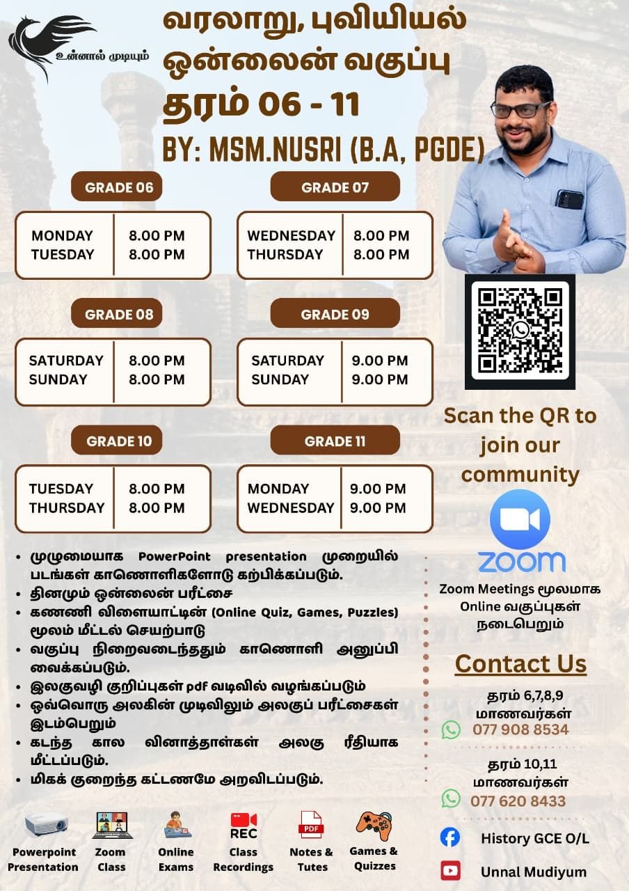 📝உன்னால் முடியும் வழிகாட்டல் மையத்தினால் தரம் 06- 11 (2026) மாணவர்களுக்கான வரலாறு மற்றும் புவியியல் பாட ஒன்லைன் வகுப்புகள் இடம்பெறுகின்றன.