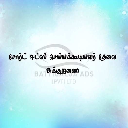 அக்குறனையில் இயங்கும் ஹோட்டலுடன் கூடிய கூல் ஸ்பொட் நிறுவனத்திற்கு சோட் ஈட்ஸ் (Short Eats) செய்து கடையினை நிருவாகம் செய்யக்கூடிய அனுபவமுள்ள தகுதியான ஒருவர் தேவை