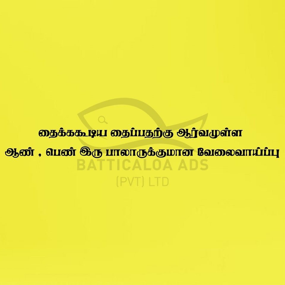Note:- இலகுவான Parts (துண்டு) வேளைகளே வழங்கப்படும். Parts களுக்கு நிர்ணயிக்கப்பட்ட சம்பளம் ஒவ்வொரு வார இறுதியில் வழங்கப்படும்.