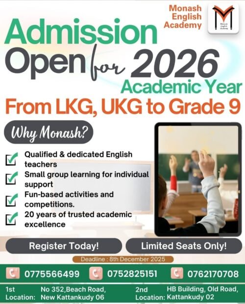 New Admission Open – Monash English Academy Kattankudy